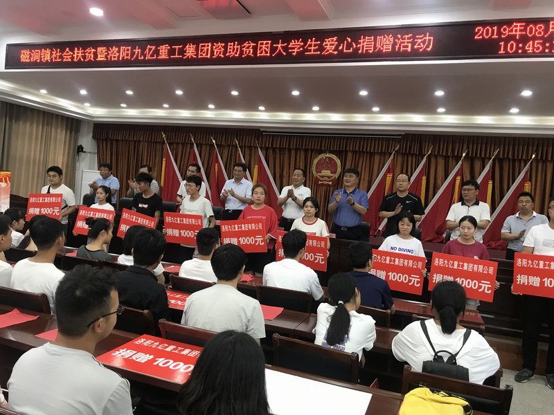 愛是與生俱來的,在血液里流動(dòng),在骨子里結(jié)晶,它源源不斷的由心而生,永不枯竭,只要人人都愿意奉獻(xiàn)一點(diǎn)愛,就如甘霖沐浴大地,人間處處盛開幸福之花! 為響應(yīng)洛陽市政府精準(zhǔn)扶貧政策,洛陽九億重工集團(tuán)有限公司及董事長(zhǎng)王九茂積極參與捐資助學(xué)的慈善義舉活動(dòng),特做出如下決定:1、公司幫扶磁澗鎮(zhèn)2017年新招貧困大學(xué)生21名順利入學(xué),每人資助2000元,總計(jì)肆萬貳仟元整; 2、總經(jīng)理王九茂(縣政協(xié)委員)以個(gè)人名義資助磁澗鎮(zhèn)南窯村2017年新招大學(xué)生6名,總計(jì)12000元整; 我相信,在社會(huì)各界的大力支持和共同努力下,我們的“愛心助學(xué)”活動(dòng)將會(huì)惠及到更多的同學(xué),為了夢(mèng)想,刻苦讀書、報(bào)銷祖國,廣大同學(xué)也一定會(huì)在溫暖的社會(huì)大家庭里茁壯成長(zhǎng),必將成為國家建設(shè)的有用之才! 洛陽九億重工集團(tuán)有限公司 董事長(zhǎng):王九茂